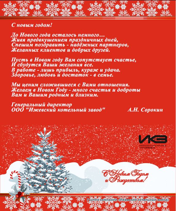 С наступающим новым годом - тепла и добра желает иж.котельный завод